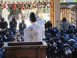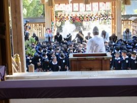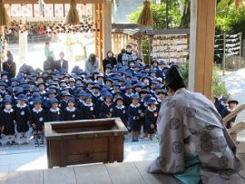 園児たちは神主さんから神具でお祓いをしていただきました。